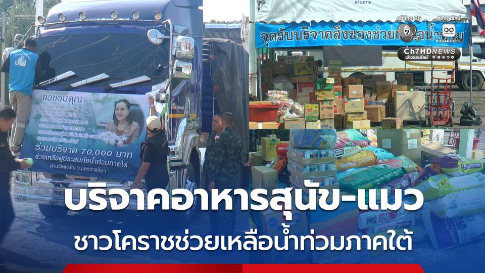 นอกจากคนที่ลำบากเดือดร้อน สัตว์เลี้ยงก็ลำบากเช่นกัน ชาวโคราชชร่วมบริจาคของยังชีพ พร้อมอาหารสุนัขและแมว ช่วยเหลือน้ำท่วมภาคใต้