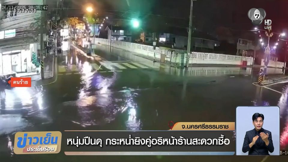 ข่าวเย็นประเด็นร้อน - หนุ่มคนหนึ่งไปส่งเพื่อนซื้อของที่ร้านสะดวกซื้อ แต่ระหว่างรอเพื่อน เจอคู่อริเดินออกจากร้านพอดี เลยชักปืนกระหน่ำยิง