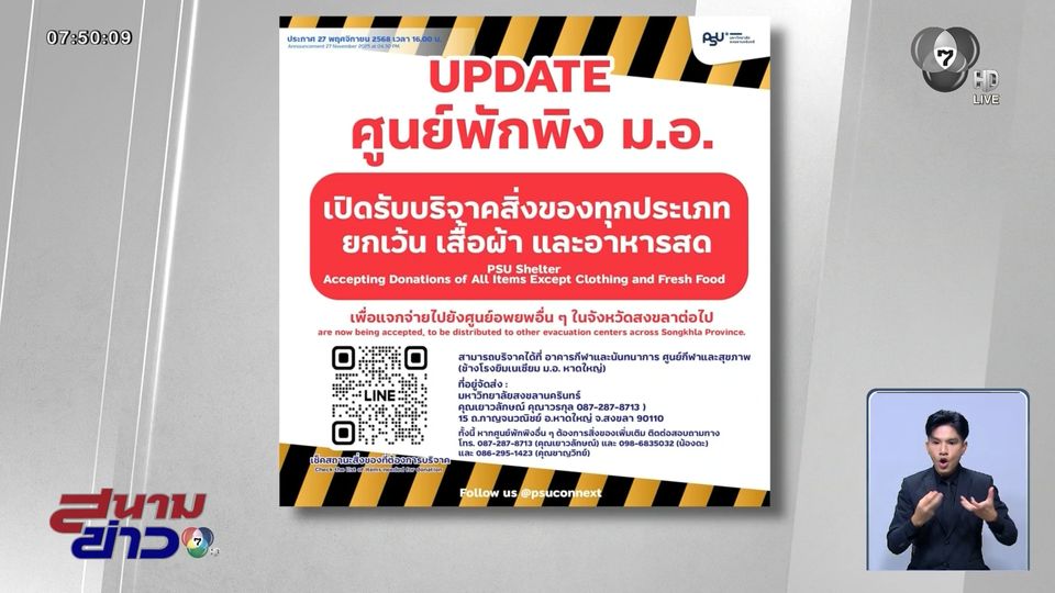 โดยขณะนี้ ทางศูนย์ฯ เป็นรับบริจาคสิ่งของทุกประเภท ยกเว้น เสื้อผ้า อาหารสด