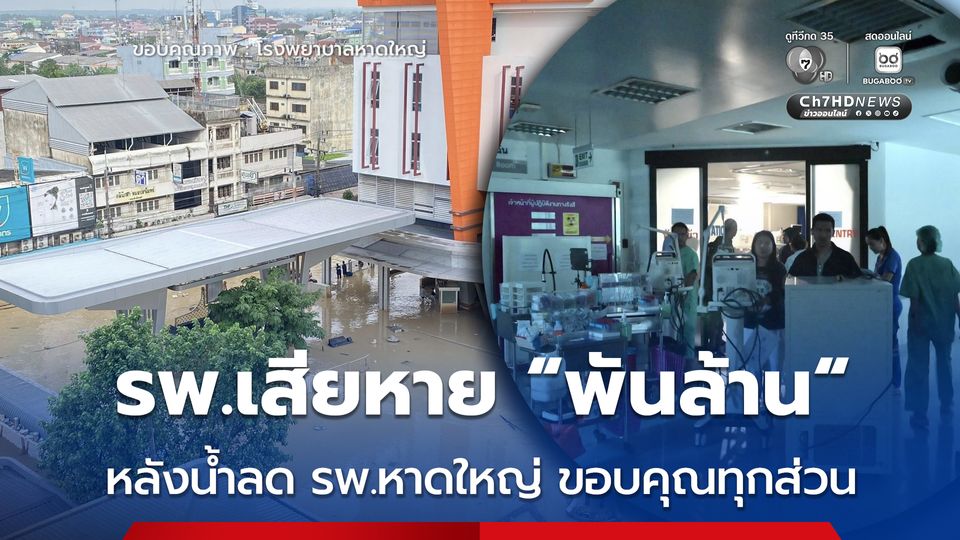 โรงพยาบาลหาดใหญ่ได้รับความเสียหายต่อสถานที่ และวัสดุอุปกรณ์ทางการแพท์อย่างสูงสุด เป็นมูลค่ากว่า "พันล้านบาท" แต่เราจะก้าวผ่านวิกฤตนี้ไปด้วยกัน โดยสามารถร่วมบริจาคได้ที่เลขบัญชี