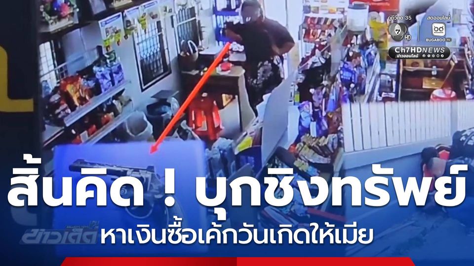 ข่าวเด็ด 7 สี - เมื่อช่วงหัวค่ำ ตำรวจปากคลองรังสิตจับชายควงปืนบุกเข้าชิงทรัพย์ร้านโชว์ห่วย อ้างว่าร้อนเงิน จะหาเงินไปซื้อเค้กมาฉลองวันเกิดให้เมีย