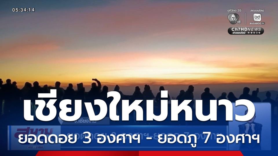 สนามข่าวเสาร์-อาทิตย์ - ที่จังหวัดเชียงใหม่ นักท่องเที่ยวเดินทางไปสัมผัสอากาศหนาวในวันหยุดสุดสัปดาห์ที่ยอดดอยอินทนนท์ อุณหภูมิที่ยอดดอยลดต่ำสุด 3 องศาเซลเซียส