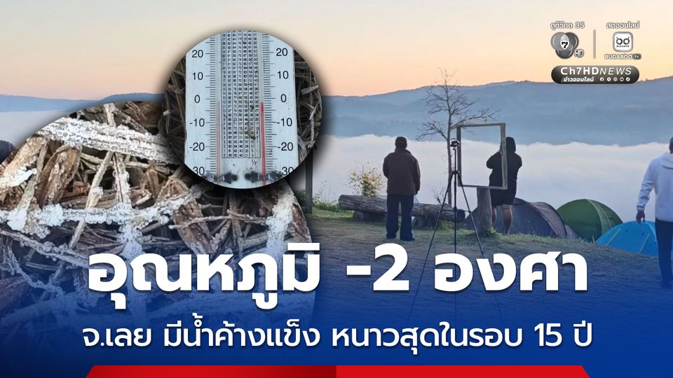 ที่ จ.เลย อุณหภูมิยอดหญ้าลดเหลือ -2 องศา ทำให้น้ำค้างกลายเป็นเกล็ดน้ำแข็ง ชาวบ้านเผยหนาวสุดในรอบ 15 ปี