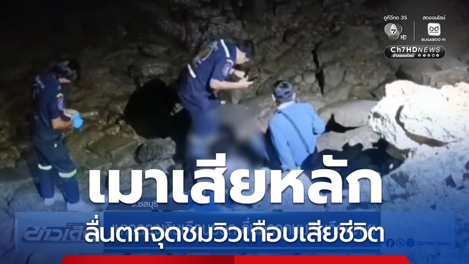 ข่าวเด็ด 7 สี - โฟร์แมนบริษัทรับเหมา ฉลองเงินเดือนออก ดื่มสุราจนเมาเสียหลัก ลื่นตกเนินเขาจุดชมวิวทะเลแหลมฉบัง ลึก 7 เมตร
