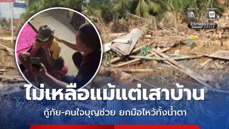 สงสารจับใจ กู้ภัยใต้เต็กตึ้ง อ.ท่าศาลา จ.นครศรีธรรมราช ไปช่วยน้ำท่วมหาดใหญ่ ผ่านมาเจอลุงพยายามสร้างบ้านลำพังกลางดึก ถูกน้ำพัดบ้านพังไม่เหลือแม้เสาบ้าน ควักเงินส่วนตัวช่วย 3 พันบาท ก่อนมีนักธุรกิจสาวใจบุญเห็นไลฟ์โอนช่วยเพิ่มอีก 3 หมื่นบาท ลุงซาบซึ้งยกมือไหว้ขอบคุณทั้งน้ำตา