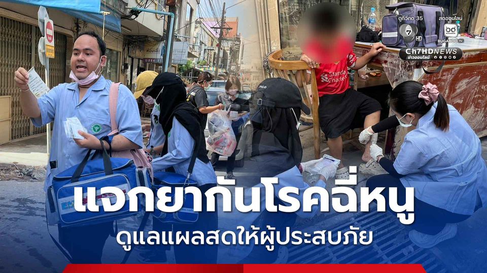 ทีมสาธารณสุข ทั้งแพทย์ พยาบาล และเจ้าหน้าที่สาธารณสุข เดินเท้าลงพื้นที่เมืองหาดใหญ่ นำกระเป๋า และถุงยา เดินลุยเข้าไปตามถนน ตรอก ซอก ซอย ในเขตเมืองหาดใหญ่ เพื่อนำยาป้องกันโรคฉี่หนู เข้ามาแจกจ่ายให้กับผู้ประสบภัย ที่เป็นกลุ่มเสี่ยง แช่น้ำหลายวัน โดยเฉพาะคนที่มีบาดแผลที่เท้า โดยเจ้าหน้าที่ให้ยา 2 เม็ด เพื่อกินป้องกัน แต่แนะนำให้กลุ่มเสี่ยงสังเกตอาการเพิ่มเติม หากมีอาการไข้ หนาว สั่น ให้รีบไปพบแพทย์
