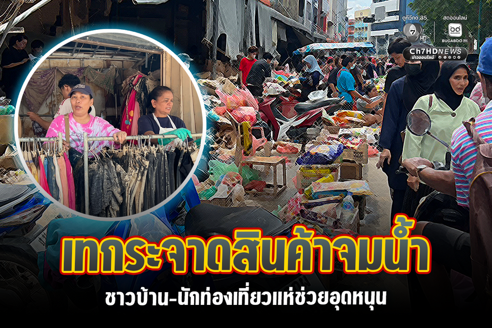 เทกระจาดสินค้าจมน้ำ ร้านค้าในตลาดกิมหย๋ง ลดกระหน่ำซัมเมอร์เซลล์ ชาวบ้าน-นักท่องเที่ยวแห่ช่วยอุดหนุน