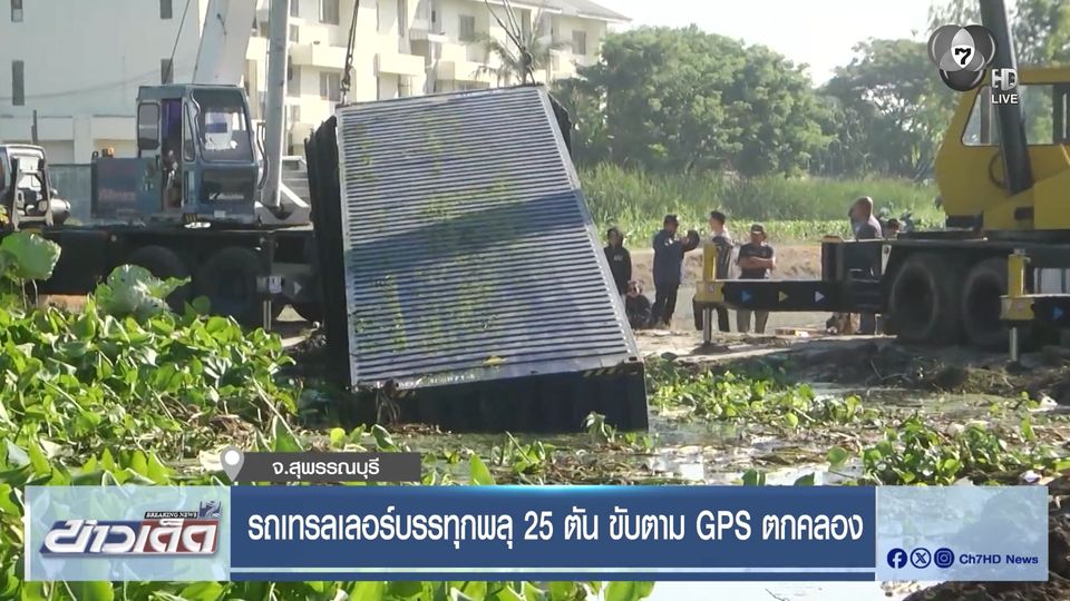 ข่าวเด็ดภาคดึก - ส่วนที่จังหวัดสุพรรณบุรี เกิดเหตุระทึกเมื่อรถบรรทุกพลุดอกไม้เพลิงหนัก 25 ตัน คนขับไม่ชินทางขับตาม GPS เกิดตกคลอง เคราะห์ดีพลุไม่ระเบิด