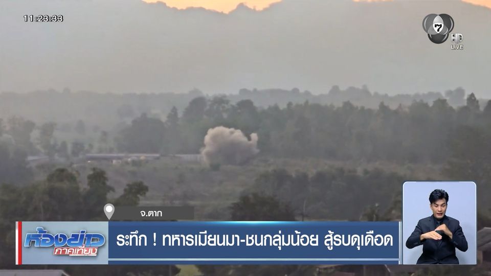 ห้องข่าวภาคเที่ยง - ชาวบ้านแนวชายแดนด้านอำเภอแม่สอด จังหวัดตาก ตั้งแต่ช่วงดึก จนถึงเช้า ต้องอยู่ด้วยความระทึก อกสั่นขวัญแขวน ทั้งจากเสียงปืนกล และเสียงระเบิด ต้องหาที่หลบกันวุ่น