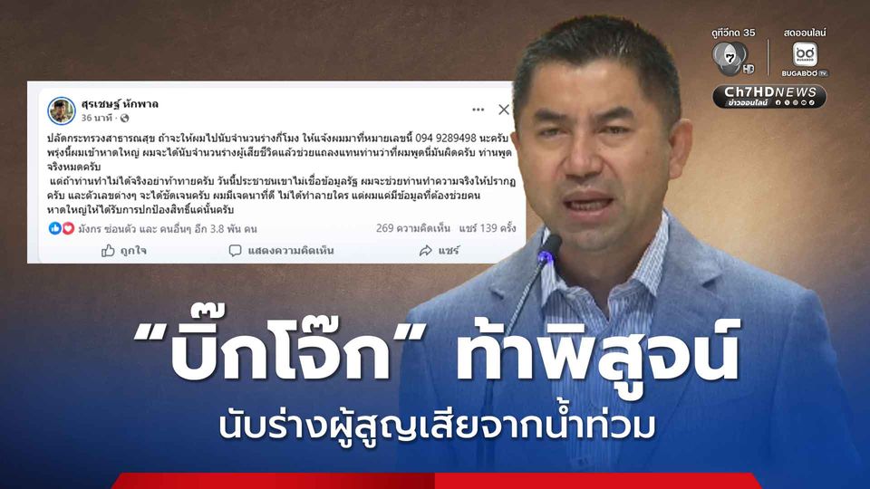 "บิ๊กโจ๊ก" ท้าปลัดกระทรวงสาธารณสุข พิสูจน์ นับร่างผู้สูญเสียจากน้ำท่วม ย้ำ มีเจตนาที่ดี ช่วยคนหาดใหญ่ให้ได้รับการปกป้องสิทธิ์