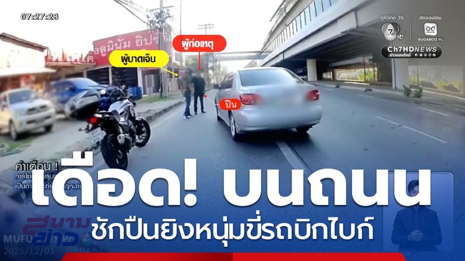 สนามข่าว 7 สี - นายกสมาคมนักกฎหมายนนทบุรี ชักปืนยิงหนุ่มขี่รถบิกไบก์ หลังมีปัญหากันบนถนน อ้างถูกถีบรถ ให้ของลับ ด่าทอด้วยคำหยาบคาย และยังถูกท้าทาย จึงเกิดบันดาลโทสะ