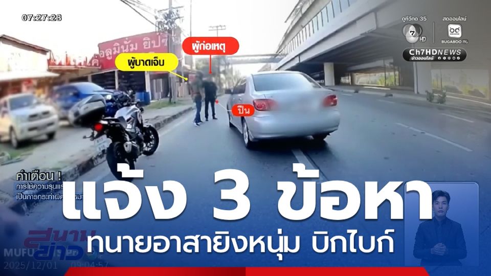 ห้องข่าวภาคเที่ยง - นายกสมาคมนักกฎหมายนนทบุรี บันดาลโทสะ ชักปืนยิงหนุ่มขี่รถบิกไบก์ หลังมีปัญหากันบนถนน อ้างถูกถีบรถ ให้ของลับ