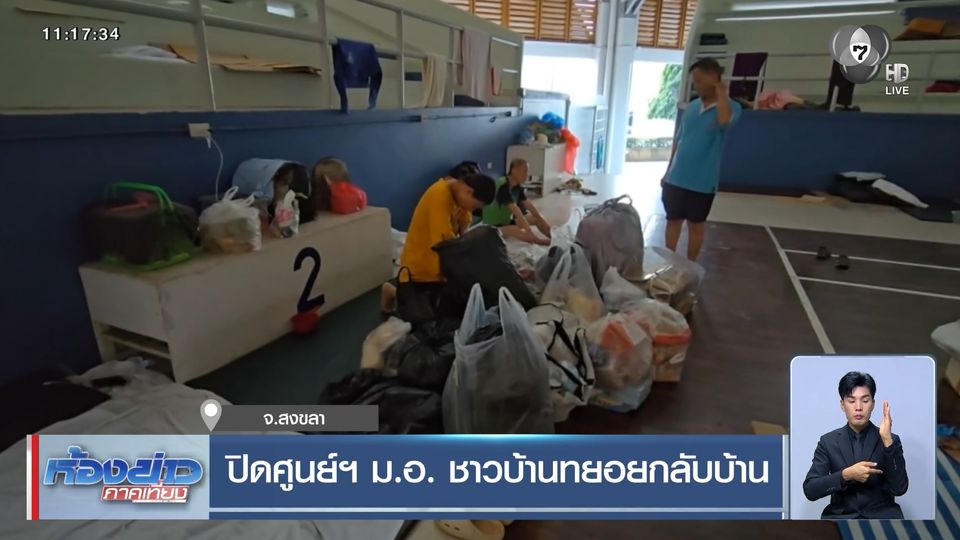 ห้องข่าวภาคเที่ยง - วันนี้เป็นวันสุดท้ายที่ศูนย์พักพิงผู้ประสบภัย ม.อ.ปิดตัวลง ชาวบ้านส่วนใหญ่เลือกที่จะกลับบ้าน ส่วนน้อยขอไปอยู่ศูนย์พักพิงแห่งใหม่