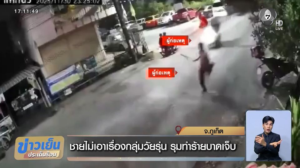 ข่าวเย็นประเด็นร้อน - กลุ่มวัยรุ่นนับสิบคนขี่รถจักรยานยนต์ไล่ทำร้ายชายคนหนึ่งกลางเมืองภูเก็ต อย่างไม่กลัวเกรงกฎหมาย จนได้รับบาดเจ็บเป็นแผลฉกรรจ์