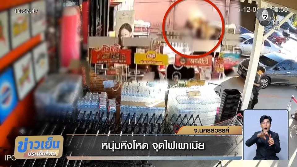 ข่าวเย็นประเด็นร้อน - ไปที่จังหวัดนครสวรรค์ หนุ่มคนหนึ่งหึงเมียหนักมาก ถึงขั้นตามไปที่ทำงานเมีย แล้วจุดไฟเผา