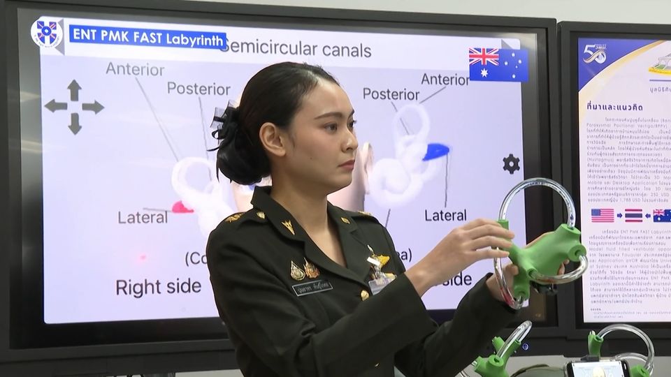 จากนั้น เสด็จพระราชดำเนินไปยังชั้น 3 ทอดพระเนตรการจำลองที่พยาบาลกองพัน จัดตั้ง ณ โรงพยาบาลพนมดงรัก จังหวัดสุรินทร์ สาธิตการปฏิบัติของนายแพทย์ ผู้บังคับหมวดเสนารักษ์ กองพันทหารราบ ในการช่วยชีวิตขั้นสูงประเมินและแก้ไขทางเดินหายใจอุดกั้น การใส่ท่อระบายทรวงอก และการให้เลือด เพื่อแก้ไขภาวะช็อก, การจำลองโรงพยาบาลสนามกองทัพบกส่วนหน้า ที่จัดตั้ง ณ โรงพยาบาลปราสาท จังหวัดสุรินทร์ เป็นการบูรณาการทรัพยากรร่วมกันระหว่างกรมแพทย์ทหารบกและกระทรวงสาธารณสุข ในการรักษากำลังพลที่ได้รับบาดเจ็บ รวมทั้ง การถวายรายงานข้อมูล โดยแพทย์ที่ทำการรักษากำลังพลที่บาดเจ็บจากราชการ มีการจำลองเป็นหอผู้ป่วยแผนกเวชศาสตร์ฟื้นฟู โรงพยาบาลพระมงกุฎเกล้า มีการสาธิตขาเทียมแบบต่าง ๆ ที่กำลังพลต้องใช้หลังการรักษา เพื่อให้สามารถใช้ชีวิตประจำวันได้ และการถวายรายงานกิจการในพระราชูปถัมภ์ เช่น การประชุม IMRC เวทีแข่งขันนำเสนองานวิจัยสำหรับนิสิต นักศึกษาแพทย์จากทั่วโลก ชิงถ้วยพระราชทาน, การนำเสนอนวัตกรรมเพื่อช่วยวินิจฉัยและรักษาโรคตะกอนหินปูนหูชั้นในเคลื่อน จากผู้ได้รับทุนมูลนิธิศิษย์นายร้อยตามรอยพระบาททูลกระหม่อมอาจารย์ ในพระราชูปถัมภ์ฯ และการถวายรายงานกิจการร้านยา โดยมูลนิธิโรงพยาบาลพระมงกุฎเกล้า ในพระราชูปถัมภ์ฯ ที่ได้รับชื่อพระราชทานว่า "สิรินธโรสถ"