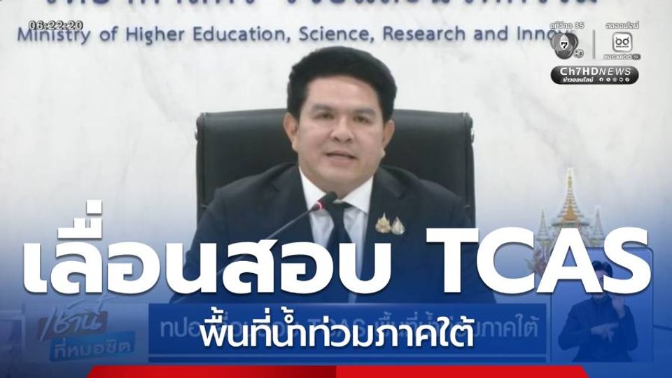 เช้านี้ที่หมอชิต - ทปอ. แถลงเลื่อนสอบ TGAT และ TPAT 2-5 ซึ่งเป็นรายวิชาที่ต้องใช้ยื่นเข้าเรียนของระบบ TCAS ในพื้นที่ประสบอุทกภัยภาคใต้ 3 จังหวัดสงขลา นราธิวาส และยะลา