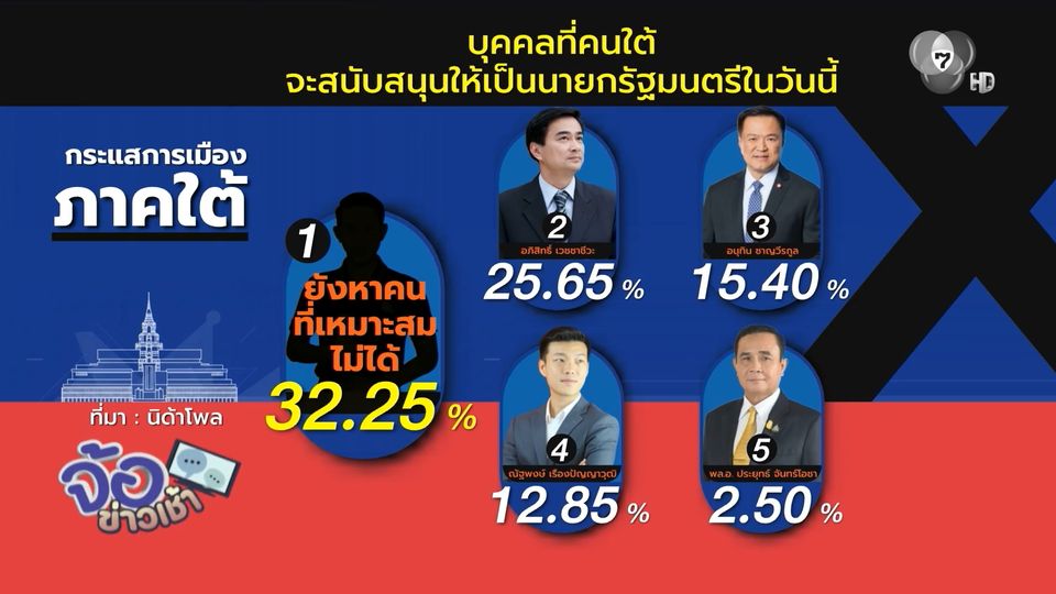 จ้อข่าวเช้า - โพลชี้ น้ำท่วมใต้ส่งผลกระทบความนิยมรัฐบาล