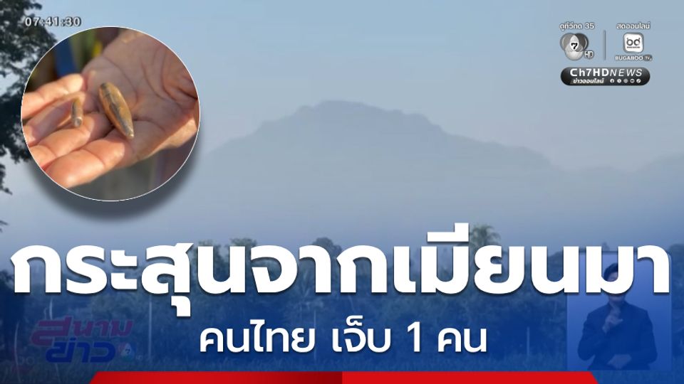 สนามข่าว 7 สี - ชาวบ้านที่จังหวัดตาก ได้รับบาดเจ็บจากการสู้รบทางฝั่งเมียนมา นั่งอยู่ในบ้านดี ๆ ก็มีกระสุนตกใส่หลังคากระเด็นถูกขา ดีที่หัวกระสุนไม่แตก