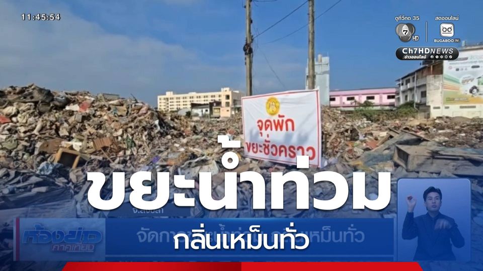 ห้องข่าวภาคเที่ยง - เมืองหาดใหญ่ ตอนนี้น้ำลดลงเข้าสู่วันที่ 6 แล้ว ตอนนี้กำลังเผชิญกับกลิ่นเหม็นจากขยะ ไปทั่วบริเวณแถว ๆ จุดรวมขยะของเทศบาล