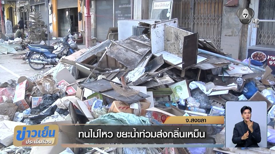 ข่าวเย็นประเด็นร้อน - มหาอุทกภัยเมืองหาดใหญ่ น้ำลดลงเข้าย่างสู่วันที่ 6 แล้ว ตอนนี้กำลังเผชิญกับขยะน้ำท่วมส่งกลิ่นเหม็น ไปทั่วบริเวณ เจ้าหน้าที่ยืนยันจะจัดเก็บขยะนับหมื่นตัน ให้หมดภายใน 1 สัปดาห์