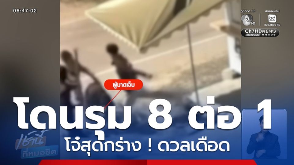 เช้านี้ที่หมอชิต - ตำรวจเร่งตามล่า วัยรุ่นสุดกร่างไล่ทำร้ายกันกลางหมู่บ้าน 1 ในนั้น เสียหลักล้ม โดนรุม 8 ต่อ 1