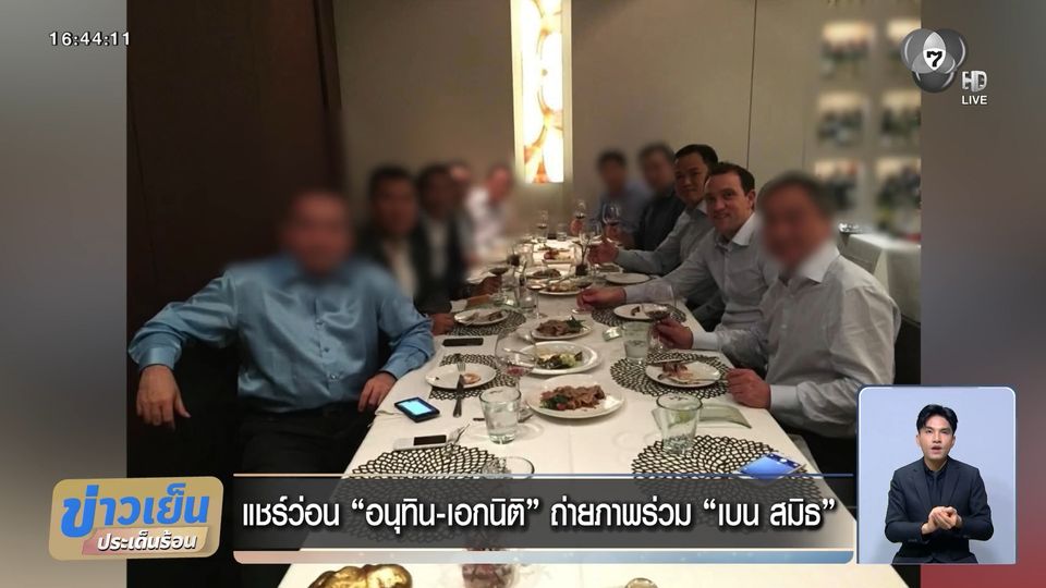ภาพนายอนุทิน ชาญวีรกูล นายกรัฐมนตรี และ รัฐมนตรีว่าการกระทรวงมหาดไทย ถ่ายรูปร่วมเฟรมกับนายเบน สมิธ นอกจากนี้ยังมี อดีตบิ๊กทหาร อดีต สว. และอดีตตำรวจ ร่วมอยู่ด้วย และยังมีภาพนายเอกนิติ นิติทัณฑ์ประภาส รองนายกรัฐมนตรี และรัฐมนตรีว่าการกระทรวงการคลัง ถ่ายภาพร่วมกับนายเบน สมิธ ที่อยู่ในงานเลี้ยงด้วย