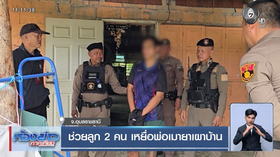 ห้องข่าวภาคเที่ยง - ไปที่อุบลราชธานี เมื่อวานเจ้าหน้าที่ไปช่วยเด็ก 2 คน ที่มีพ่อเมายาบ้าถึงขั้นเผาบ้าน ล่าสุด ตำรวจเตรียมสอบปากคำพ่อเพิ่ม ถ้าพบทำหลายครั้งก็จะแจ้งข้อหาเพิ่ม