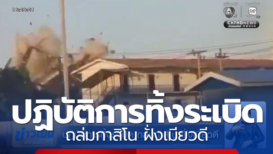 ข่าวเย็นประเด็นร้อน - เปิดภาพปฏิบัติการทหารเมียนมา ทิ้งระเบิดบ่อนกาสิโน ฝั่งเมืองเมียวดี ตรงข้าม อำเภอแม่สอด จังหวัดตาก