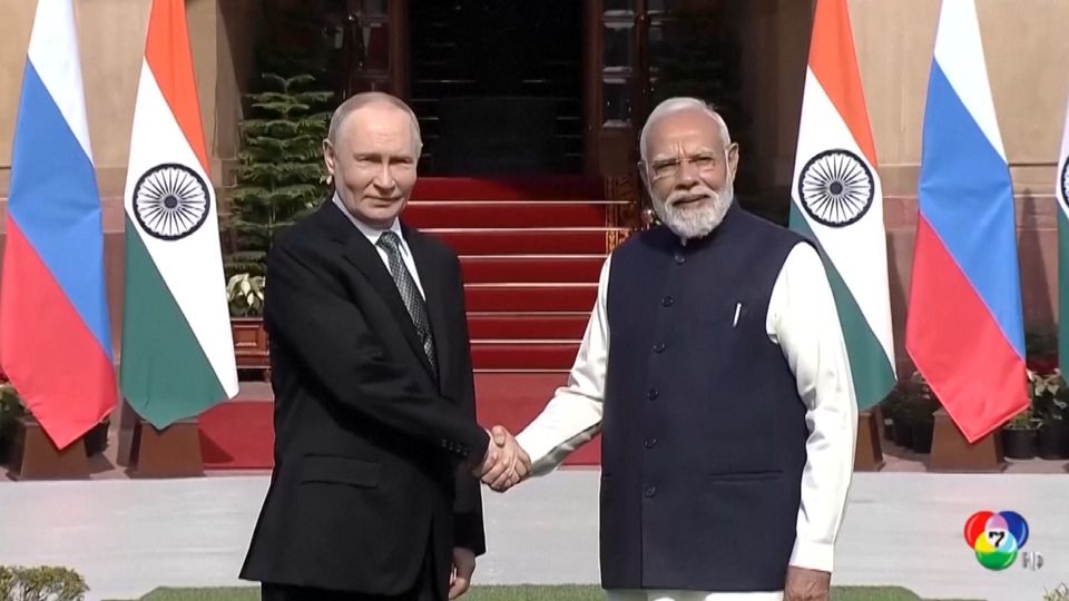 ประธานาธิบดี วลาดิเมียร์ ปูติน แห่งรัสเซีย และนายกรัฐมนตรี นเรนทรา โมดี ของอินเดีย เริ่มการเจรจาระดับสุดยอด ที่กรุงนิวเดลี ในวันนี้ (5 ธ.ค.) ซึ่งเป็นการเดินทางเยือนอินเดียเป็นครั้งแรกในรอบ 4 ปี ของผู้นำรัสเซีย เพื่อหวังส่งเสริมการค้ากับผู้ซื้ออาวุธและน้ำมันทางทะเลรายใหญ่ที่สุดของรัสเซีย ท่ามกลางมาตรการคว่ำบาตรของชาติตะวันตก ซึ่งทำให้ความสัมพันธ์ที่ยาวนานหลายทศวรรษของทั้งสองชาติตึงเครียดมากขึ้น