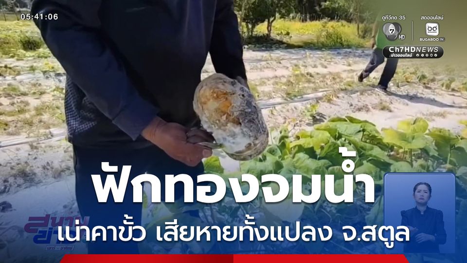 แปลงปลูกฟักทอง จำนวน 2 ไร่ครึ่ง ในตำบลปากน้ำ อำเภอละงู จังหวัดสตูล ได้รับความเสียหายจากน้ำท่วมใหญ่ ช่วงวันที่ 21-28 พฤศจิกายนที่ผ่านมา