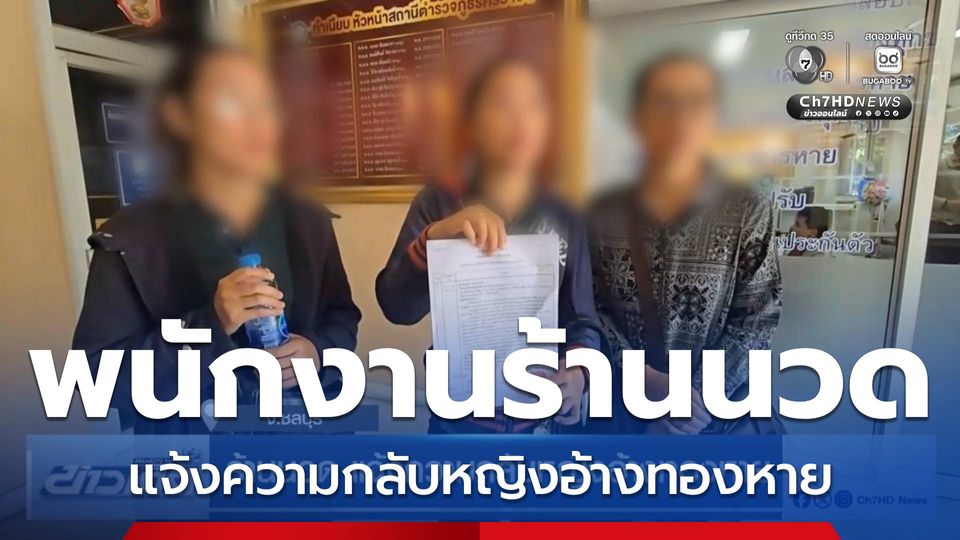ข่าวเด็ด 7 สี - พนักงานร้านนวด จังหวัดชลบุรี แจ้งความกลับเอาผิดลูกค้า ที่กล่าวหาว่า ขโมยทองรูปพรรณ หนัก 5 บาท ที่ต่อมากลายเป็นเรื่องโอละพ่อ ลูกค้าลืมไว้ที่บ้าน