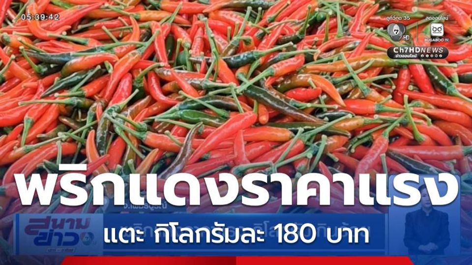 สนามข่าวเสาร์-อาทิตย์ - ราคาพริกแดง พุ่งแรง ราคาขายส่งกิโลกรัมละ 180 บาท จากปัญหาน้ำท่วมในหลายพื้นที่ก่อนหน้านี้ ส่งผลให้ผลผลิตเสียหาย และพริกขาดตลาด