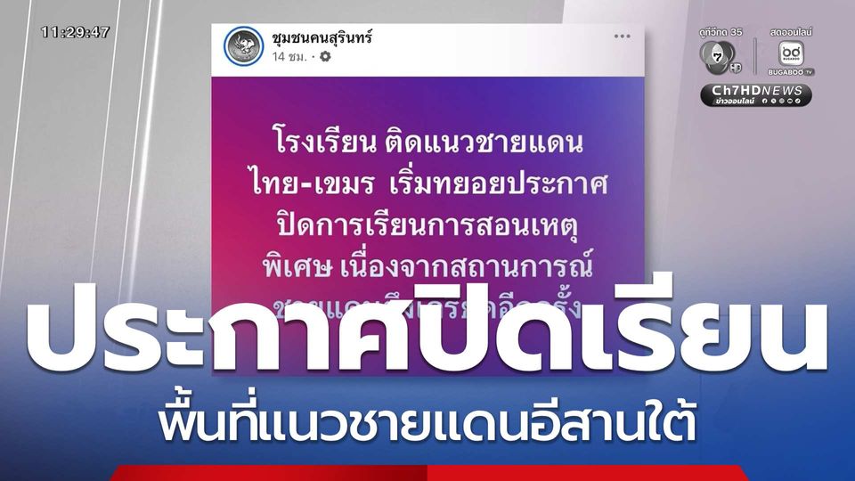 ห้องข่าวภาคเที่ยง - หลายโรงเรียนในพื้นที่ชายแดนไทย-กัมพูชา ประกาศหยุดเรียน เนื่องจากสถานการณ์ความไม่ปลอดภัย
