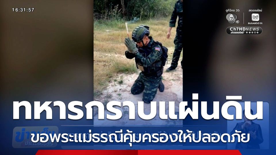 ข่าวเย็นประเด็นร้อน - โซเชียลแชร์คลิปทหารไทยจุดธูปกราบแผ่นดิน ขอให้พระแม่ธรณีปกป้องช่วยให้ปลอดภัยในภารกิจปฏิบัติหน้าที่ป้องกันชายแดนไทย-กัมพูชา