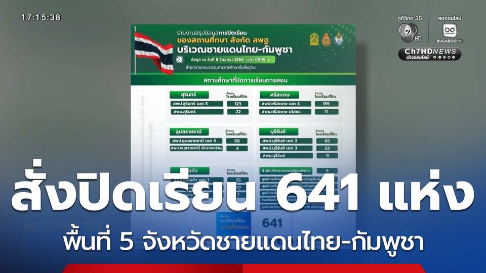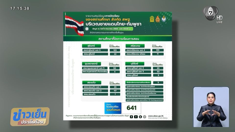 ข่าวเย็นประเด็นร้อน - กระทรวงศึกษาธิการ สั่งปิดโรงเรียน 641 แห่งใน 5 จังหวัดชายแดนไทย-กัมพูชา ย้ำความปลอดภัยครู-นักเรียนต้องมาก่อน