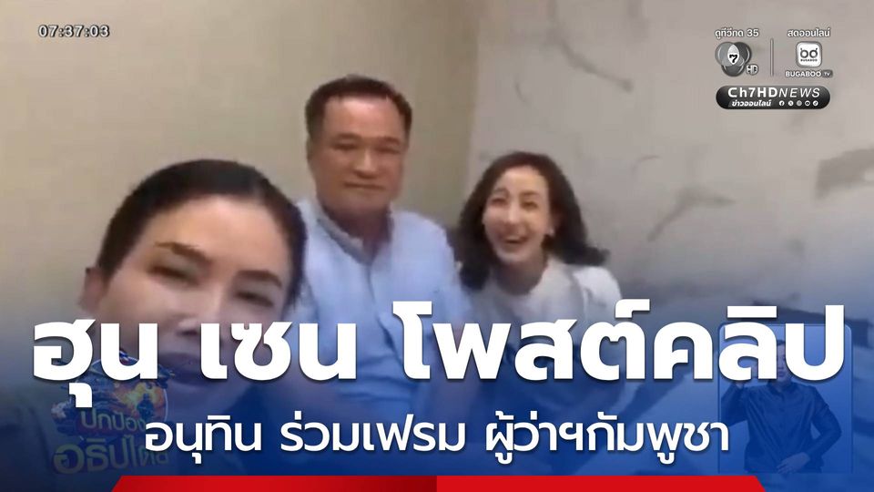 คลิปวิดีโอความยาว 16 วินาทีที่ "สมเด็จฯ ฮุน เซน" โพสต์ผ่าน Facebook เป็นภาพของนายกฯ อนุทิน และนางสาวธนนนท์ นิรามิษ ภริยา ถ่ายรูปร่วมกับ นางบัน สเรย มอม ผู้ว่าราชการจังหวัดไพลินของกัมพูชา