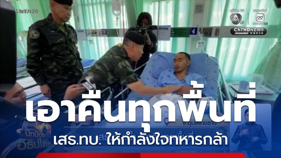 ข่าวเย็นประเด็นร้อน - เสนาธิการทหารบก เข้าเยี่ยมทหารที่ได้รับบาดเจ็บจากการปะทะชายแดนไทย-กัมพูชา ที่จังหวัดอุบลราชธานี พร้อมย้ำจะเอาคืนในทุกพื้นที่ และพูดให้กำลังใจทหารกล้า