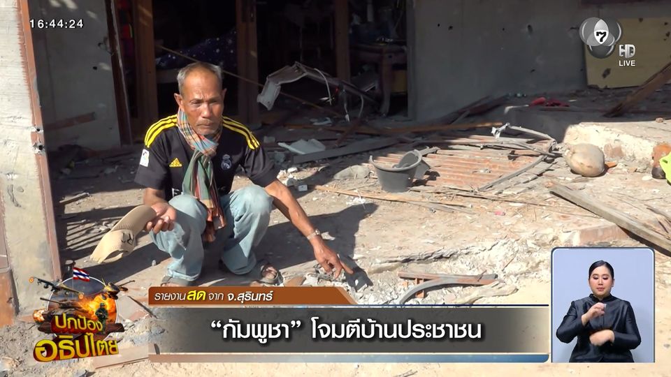 ข่าวเย็นประเด็นร้อน - บ้านเรือนประชาชนในพื้นที่จังหวัดสุรินทร์ ได้รับความเสียหาย จากการโจมตีแบบไร้ทิศทางของกัมพูชาแล้ว สถานการณ์เป็นอย่างไรติดตามรายงานสดกับเกียรติชัย บุญราโส