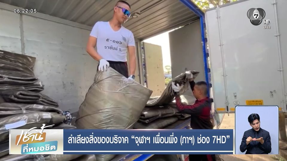เช้านี้ที่หมอชิต - สิ่งของบริจาคจากธารน้ำใจคนไทยล็อตสุดท้าย จากโครงการ "จุฬาฯ เพื่อนพึ่ง (ภาฯ) ช่อง 7HD รวมใจ ฝ่าภัยน้ำท่วมใต้" ถูกส่งถึงพื้นที่หาดใหญ่ พร้อมเตรียมส่งมอบให้ผู้ประสบภัยแล้ว