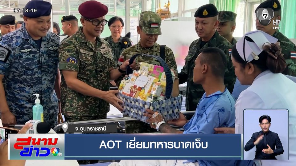 สนามข่าว 7 สี - เมื่อวาน คณะผู้สังเกตการณ์อาเซียน หรือ AOT ลงพื้นที่ พบทหารไทยที่ถูกทหารกัมพูชายิง เมื่อวันที่ 7 ธันวาคม ที่ผ่านมา ที่โรงพยาบาลค่ายสรรพสิทธิประสงค์