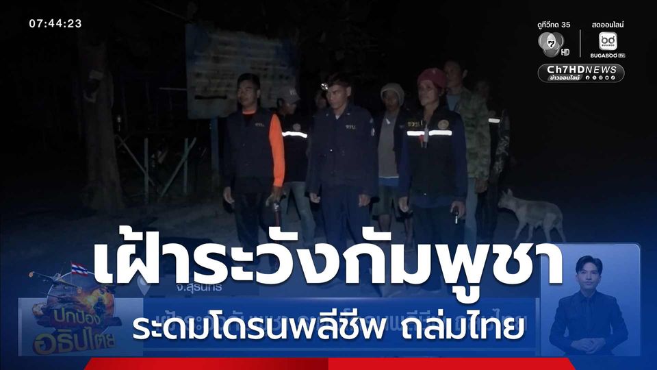 เมื่อคืน ทีมข่าว 7HD คุณเกียรติชัย บุญราโส ซึ่งปักหลักอยู่ในพื้นที่ ได้ไปสำรวจหมู่บ้านตามแนวชายแดนจังหวัดสุรินทร์ หลังจากหน่วยงานความฝั่นคง รายงานว่าฝ่ายกัมพูชาจะระดมโดรนพลีชีพสังหารบุคคลมากกว่า 600 ลำ บินรุกล้ำเข้ามาในพื้นที่ฝั่งไทย