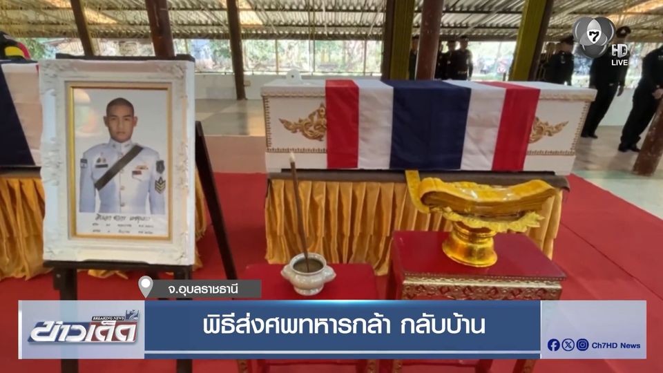 ข่าวเด็ด 7 สี - ที่จังหวัดอุบลราชธานี ได้มีพิธีส่งศพทหารกล้า 2 นาย ที่เสียชีวิตในสมรภูมิรบ ขึ้นเครื่องบิน C-130 กลับบ้าน
