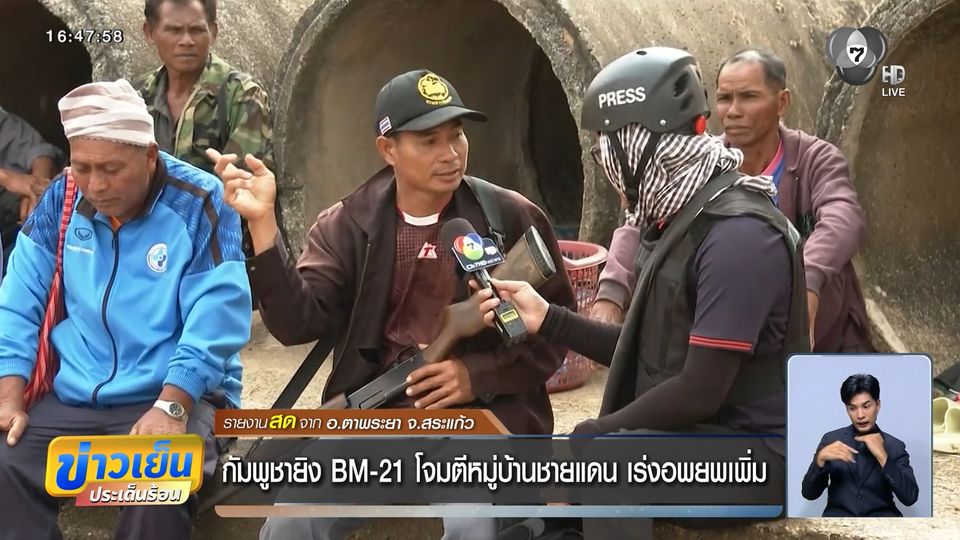 ข่าวเย็นประเด็นร้อน - เข้าสู่วันที่ 4 สถานการณ์ชายแดนจังหวัดสระแก้วยังตึงเครียด กัมพูชาเปิดฉากยิง BM-21 เข้ามายังฝั่งไทยด้านอำเภอตาพระยา ไปติดตามกับ คุณเจษฎา อุปนิ รายงานสดจากอำเภอตาพระยา จังหวัดสระแก้ว