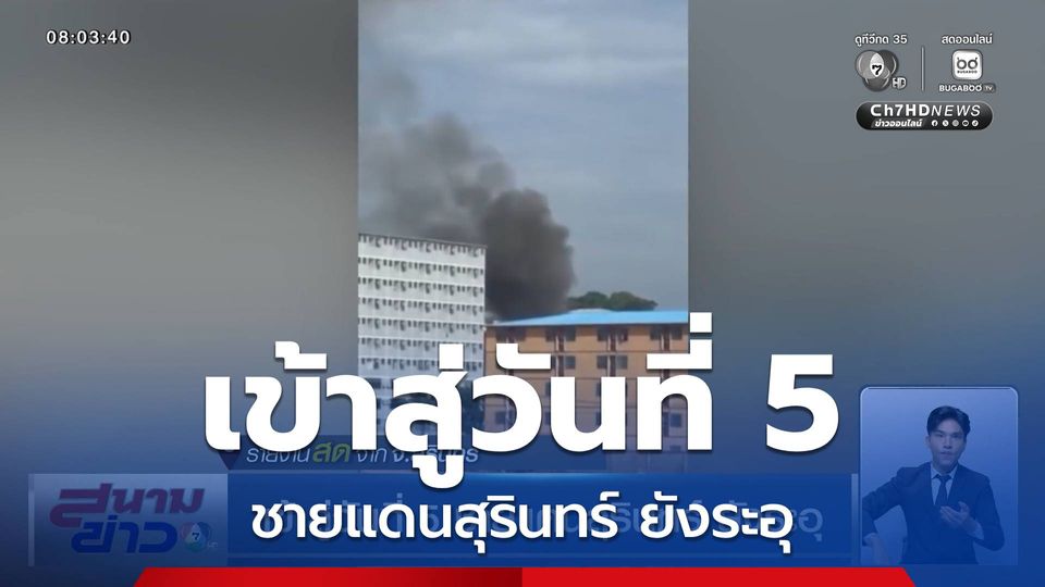 สนามข่าว 7 สี - วันนี้เข้าสู่วันที่ห้าของการปะทะกันระหว่างไทยและกัมพูชา ซึ่งพื้นที่จังหวัดสุรินทร์เป็นอีกหนึ่งพื้นที่ที่ยังยังคงมีการปะทะกันอย่างดุเดือดต่อเนื่อง สถานการณ์เช้านี้เป็นอย่างไรติดตามรายงานกับเกียรติชัย บุญราโส