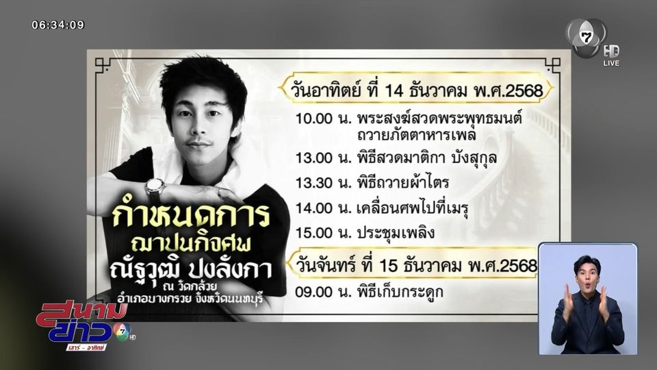 สำหรับร่างของ "นัท ปง" ครอบครัวจะประกอบพิธีทางศาสนา มีกำหนดประชุมเพลิงวันนี้ ที่วัดกล้วย จังหวัดนนทบุรี ก่อนจะทำพิธีเก็บกระดูก วันรุ่งขึ้น