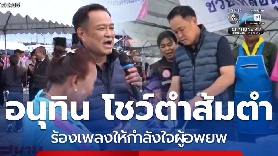 ไหน ๆ ก็มาเยี่ยมผู้อพยพทั้งที นายกฯ ไม่พลาดโชว์ฝีมือปลายจวัก ทำเมนูหอยทอดทะเล ส้มตำปลาร้า แจกจ่ายให้ผู้อพยพได้กิน ส่วนรสชาติจะแซ่บนัวขนาดไหน ผู้อพยพขออุบไว้ ไม่ขอบอก ขณะเดียวกันนายกฯ ยังร่วมร้องเพลงกับผู้อพยพ เพื่อสร้างบรรยากาศผ่อนคลาย