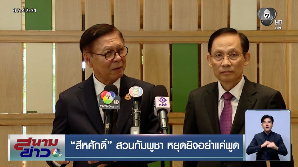 สนามข่าว 7 สี - "สีหศักดิ์" สวนกัมพูชา ไม่จริงใจ ประกาศหยุดยิงแค่เพียงลมปาก ล่าสุด ส่งหนังสือถึงยูเอ็น ชี้แจงกัมพูชา มุ่งเป้าหมายพลเรือนและละเมิดสิทธิคนไทย
