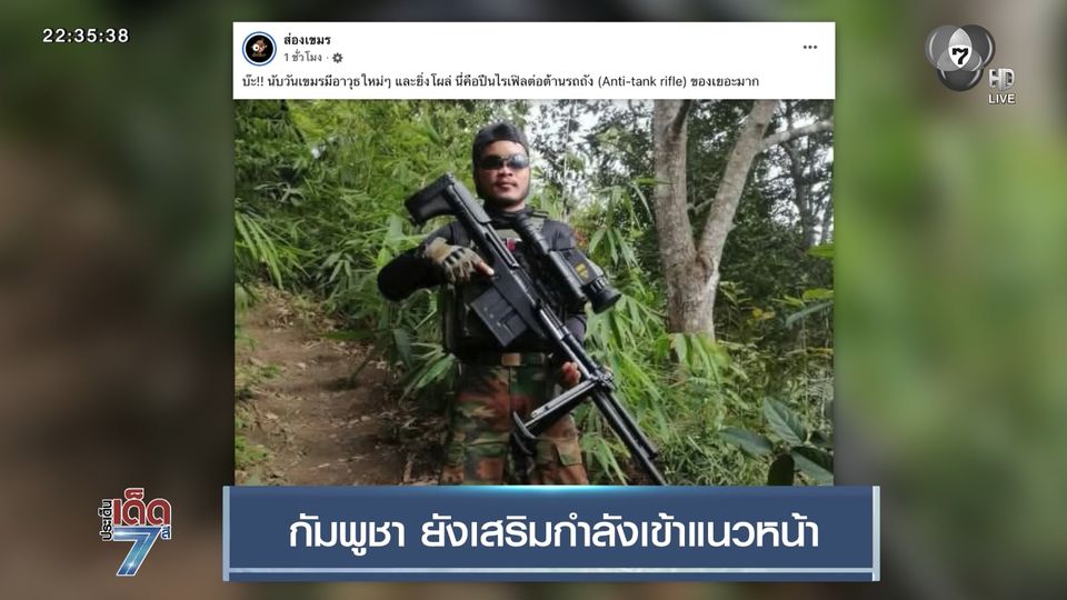 ประเด็นเด็ด 7 สี - เข้าสู่วันที่ 8 แล้วกับการสู้รบชายแดน ต้องบอกว่ากำลังพลและอาวุธ ของทหารกัมพูชาไม่น้อยลง มิหนำซ้ำยังพบการใช้อาวุธที่ทันสมัยมากขึ้น