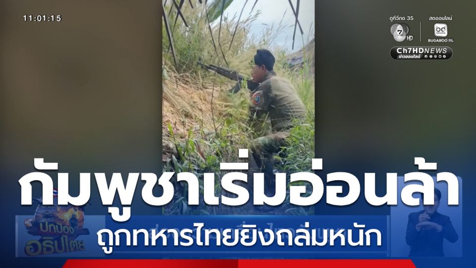 ห้องข่าวภาคเที่ยง - ทหารกัมพูชา ยังยิงตอบโต้ทหารไทยกลับมาอย่างดุเดือด แม้ว่ากำลังหาแนวหน้าจะอ่อนล้า และถูกทหารไทยยิงถล่มอย่างหนัก แต่พบว่า ยังถ่ายคลิปตนเอง และเพื่อนทหารด้วยกันอย่างต่อเนื่อง